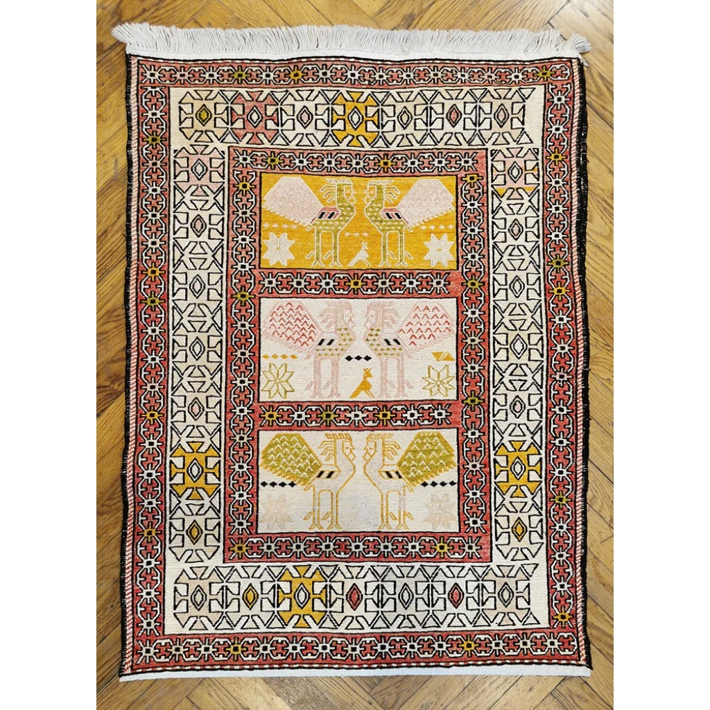 Nomadic Persian kilims are magnificent examples of art that reflect the rich cultural heritage and lifestyle of nomadic communities. Their patterns and colors are often a reflection of the history, nature, and beliefs of the people who create them, filled with symbolism and storytelling. What is particularly beautiful about nomadic Persian kilims is their authenticity and uniqueness. Each piece is handcrafted with love and care, giving them a special value. Their vibrant motifs, geometric patterns, and symbols reflect natural elements, protective signs, fertility, and other significant aspects of nomadic life. Beyond their aesthetic appeal, these kilims are also functional—serving as coverings, sleeping mats, or decorative elements in homes, while carrying forward stories and traditions passed down through generations. Every nomadic Persian kilim is thus a unique legacy that unites art, history, and life.
