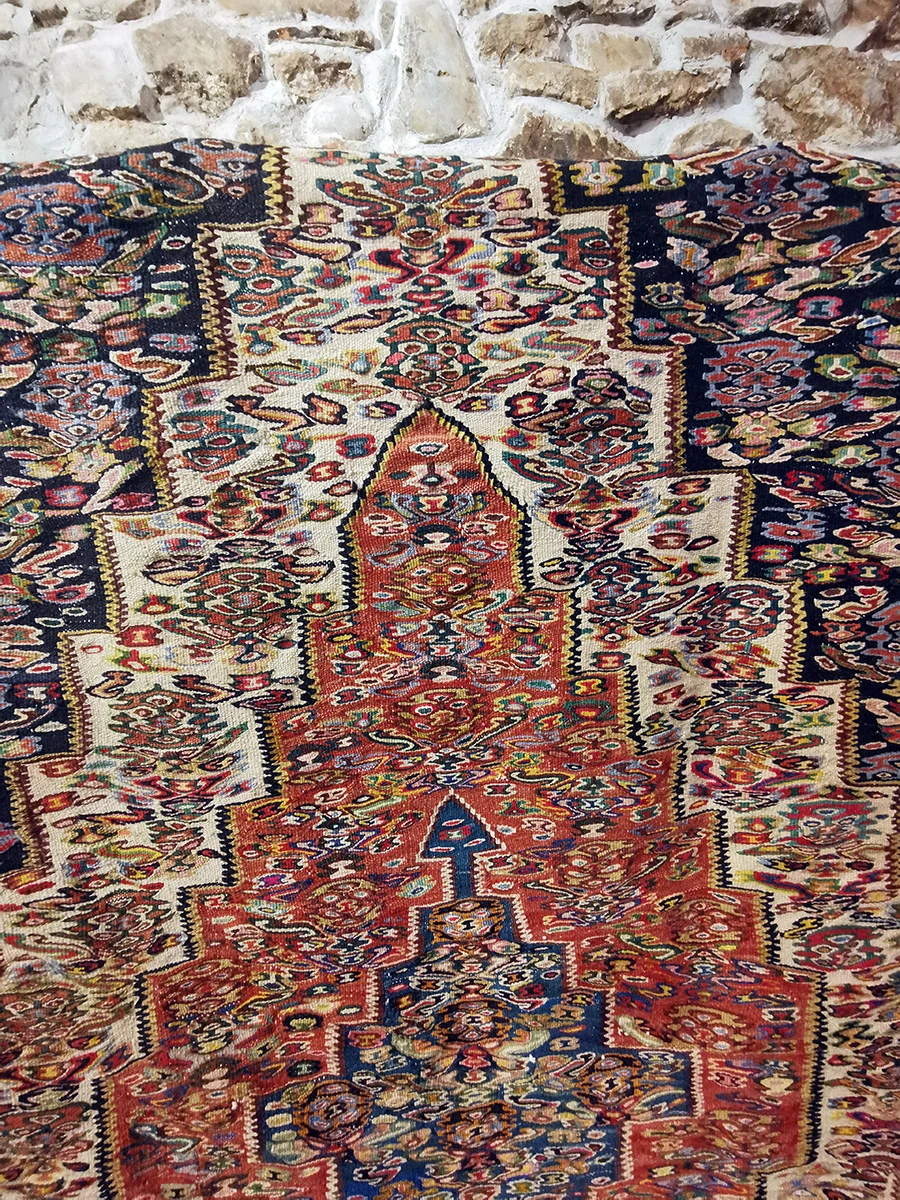 Nomadic Persian kilims are wonderful examples of art that reflect the rich cultural heritage and way of life of nomadic communities. Their patterns and colors often reflect the history, nature, and beliefs of the people who create them, and are full of symbolism and stories. What is particularly beautiful about nomadic Persian kilims is their authenticity and uniqueness. Each piece is handcrafted with love and care, giving them special value. Their vibrant motifs, geometric patterns, and symbols reflect natural elements, protective symbols, fertility, and other important aspects of nomadic life. Beyond their aesthetic appeal, these kilims are also functional – serving as throws, sleeping mats, or decorative elements in homes, while conveying stories and traditions passed down from generation to generation. Each nomadic Persian kilim is thus a unique legacy that combines art, history, and life….