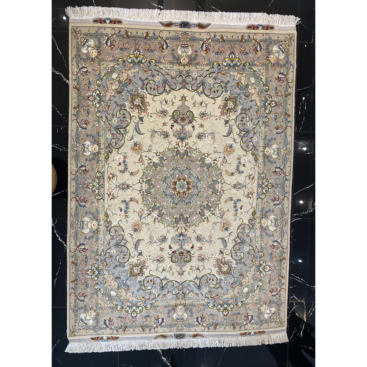 Estetika te preproge deluje bolj zračna, skoraj eterična v primerjavi s klasičnimi Tabrizi. Osrednji medaljon je še vedno prisoten, vendar ne dominira, temveč se mehko raztaplja v okolico, kot cvet, ki se odpira na svetli podlagi. Celotna kompozicija daje občutek lahkotnosti in ravnovesja, kot da motivi dihajo skupaj s praznim prostorom.